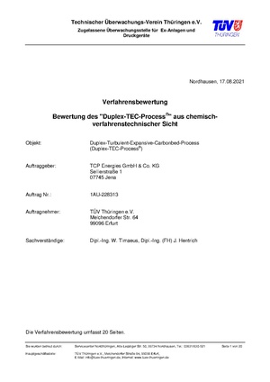 TÜV - Gutachten über die Technologie des TCP-Upcycling-Kraftwerks